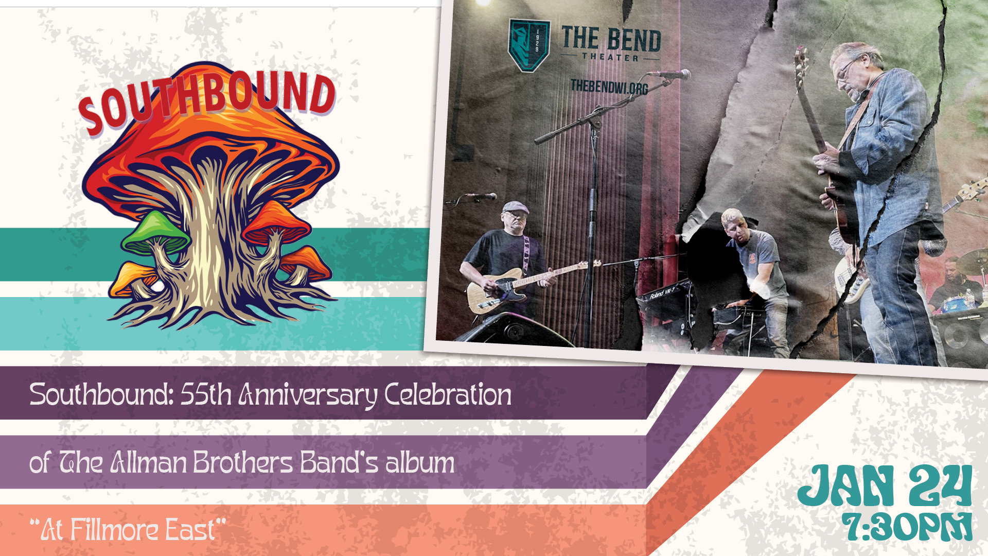The Bend Theater brings you Southbound: 55th Anniversary Celebration of The Allman Brothers Band's classic album "At Fillmore East" Southbound will present a retrospective of “At Fillmore East,” the Allman